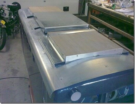 Lange dag gehad vandaag op school dus zelf ben ik er nog niet aan toe gekomen, maar John is vandaag al bezig geweest met het maken van de dakplaten, waar de details en andere spullen op komen, waaronder de pantografen!!